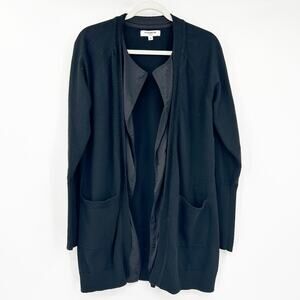 KF/KaufmanFranco Womens Quiet Luxury Minimalist Woven Wool Blend Cardigan Sweater in Black. Size small.