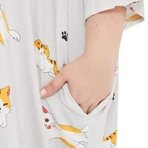 KFUBUO Plus Size Nightgowns for Women One Size S-5XL Oversized Sleep Tshirts Dress Short Sleeves Sleepwear With Pocket Grey
