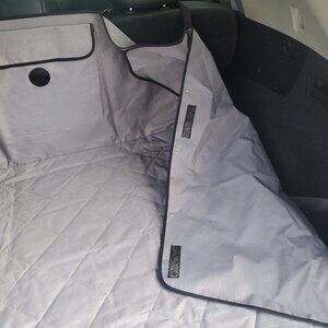 I ordered this for my Jeep not realizing it was a rear cargo liner - my norwegian elk hound likes to backseat surf so we have the backseat hammock - so I unfolded this and put it in the back of the jeep and then realized it only hooked on one side........so I did take pics that the velcro is now wearing some norwegian fur - also the mat has a picked area from the velcro (blue circle)