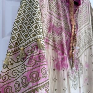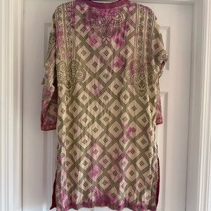 KHAADI Boho Embroidered Tunic Top Size 10 Pink Tie Dye Kurta Blouse