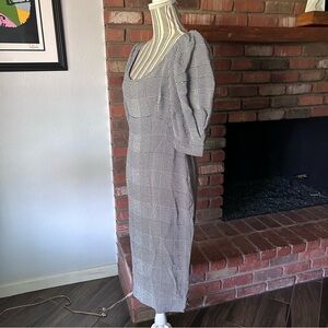 KHAITE Beatrice Puff Sleeve Houndstooth Print Sheath Dress in Black & White Sz 6