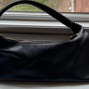 The KHAITE “Remi” Black Crescent Shoulder Bag boasts a sleek, minimalist design crafted from smooth black leather. Its crescent-shaped silhouette and supple texture make it a versatile accessory for both casual and semi-formal occasions. The comfortable top handle adds to its practicality, making it an ideal choice for everyday use.