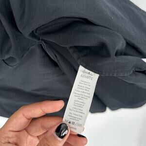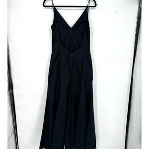 Black cotton twill (100% Cotton). Hourglass. Sleeveless. V-neckline. Hidden back zipper with hook-and-eye closure. Side pockets. 56" from shoulder to hemline. Imported.