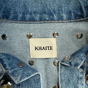 Chic denim jacket adorned with silver accents. Features a classic collar and button design. Ideal for everyday style.