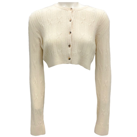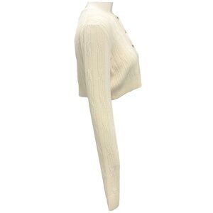 Khaite Ivory Cropped Cashmere Knit Cardigan Sweater