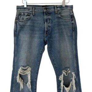 Tags: denim, classic, low rise, straight leg, ankle length, americana, casual, distressed, ripped, destroyed, slim, wardrobe staple, closet staple, designer, luxury