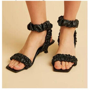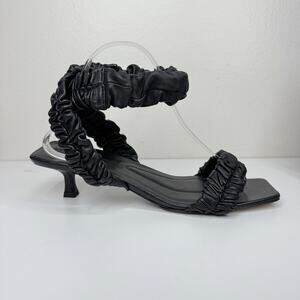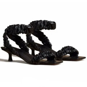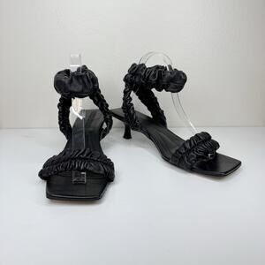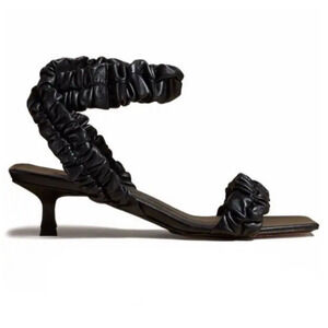 KHAITE Lexington Ruched Leather Ankle Wrap Kitten Heel Sandals Black 40EU 9.5US