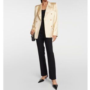 KHAITE 'Nathan' Double-Breasted Satin Blazer Jacket, Ecru