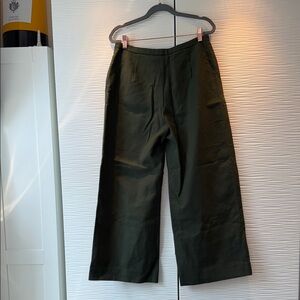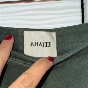 Chic wide leg pants by KHAITE. Elegant olive color. Perfect for versatile styling. 100% cotton Pet and smoke free home.