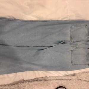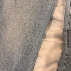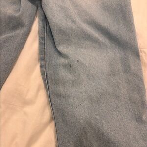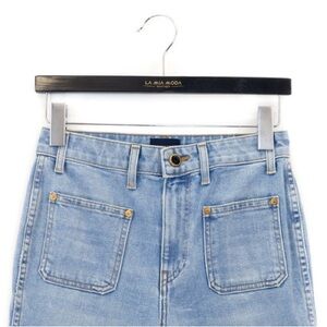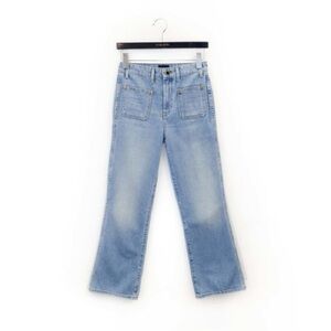 Khaite Raquel Patch Pocket Crop Flare Jeans Light Blue Wash Sz 27. Some stains.