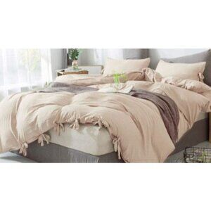 NWT COZY Khaki Duvet Cover Queen Size Soft Comforter Cover with Boho Bowknot Bow Tie NWT