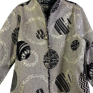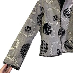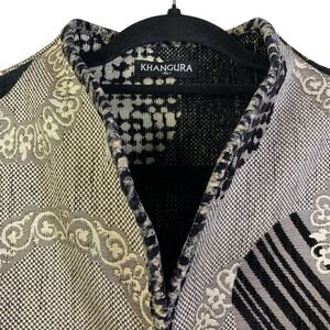 KHANGURA Gray & Black Open Front Geometric Print Cardigan Sweater