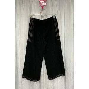 KHANGURA LINEN RAYON WIDE LEG CROP PANTS WOMENS S BLACK LAGENLOOK BOHO MADE USA