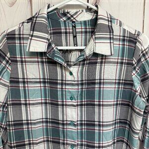 KÜHL Lexi Long-Sleeve Shirt Women’s Medium Gray–Green Plaid UPF 30 EUC