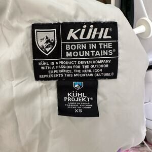 Keywords: Kuhl jacket, women XS, quilted, lightweight, performance, outdoor, camping, hiking, travel, gray, grey, zip front, mountain logo, fitted, minimalist, fall, winter, spring, layer, cold weather, activewear
