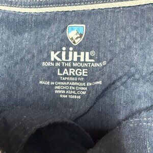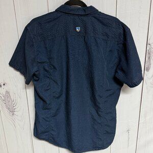 KÜHL Riviera Shirt Men’s Large Blue Linen Blend Short Sleeve Button Down Casual Travel Outdoor Lightweight