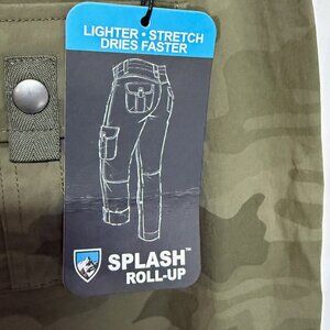 Elevate your outdoor wardrobe with these KUHL Splash Roll-Up Pants in a versatile camo green. Women’s size 14 Regular, new with tags. These pants are designed with adventure in mind, featuring a durable cotton/nylon stretch fabric that dries quickly, moves with you, and includes UPF 50 sun protection. Functional design details include snap-closure cargo pockets, reinforced stitching, and the roll-up option to convert into capris (inseam approx. 22”).