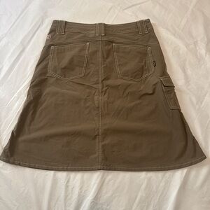 This knee-length tan skirt from Kuhl combines a classic A-line silhouette with practical cargo style, making it perfect for both casual and work settings. Crafted from a durable fabric, it offers a comfortable fit and a versatile look for everyday wear.