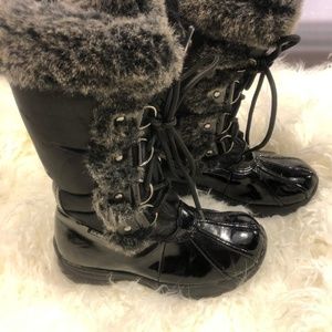 Ur little one snug in her warm lined faux fur Khombu boots amidst her stomping in your back yard snow drifts thanks 2 Mother Nature.