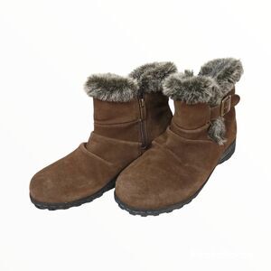 KHOMBU Brown Suede Leather Faux-Fur Lined Snow Bonnie Ankle Boot size 7M 1077489