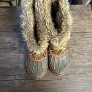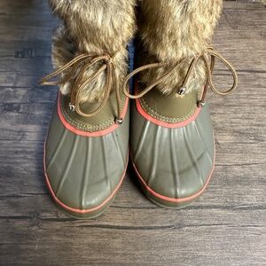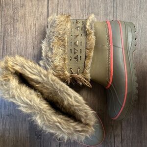 **KHOMBU* Nola Olive Green x Pink Fur Winter Boots Size 8