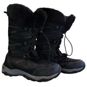 KHOMBU Black Suede Leather & Faux Fur Lined 12" Snow Boots Women's Size 7