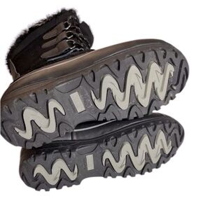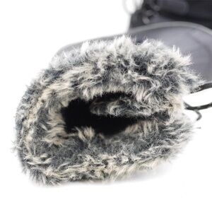 A black super warm fluffy fleece lined boot waterproof duck boot. They sit around the lower calf.