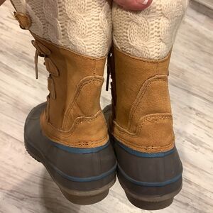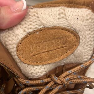 KHOMBU duck boots size 7… never worn.. good condition.. LOOK at pics… leather and man made material.. fleece like on inside.. so would be warm and cozy while water proof..