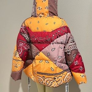 KHRISJOY Puffer Paisley Bandana Patchwork Hoodie Down Jacket 00
