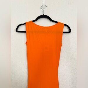 KHY Sheer Boatneck Asymmetrical Modal Jersey Midi Dress in Orange Size XXS NEW