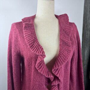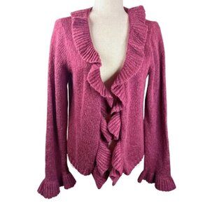 KIABI WOMAN Fuchsia Pink Purple Ruffle Wool Mohair Blend Cardigan Sweater Size L