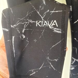 KIAVA Women’s Leggings Size Medium Pockets Black and White Marble Activewear