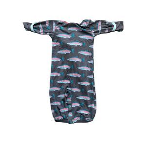 KICKEE PANTS NWT print layette gown hat set stone rainbow trout MSRP $45