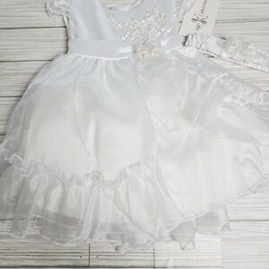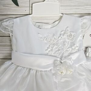 Keywords: white dress, baby dress, toddler dress, flower girl dress, christening dress, special occasion dress, party dress, infant dress, headband, floral dress, KID Collection, wedding dress, formal dress, girls dress