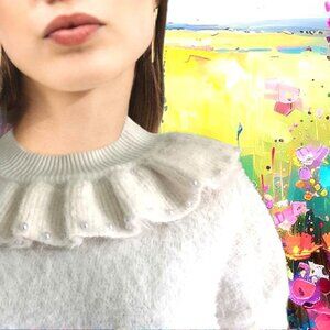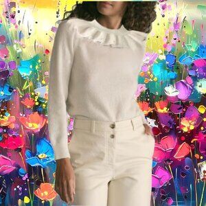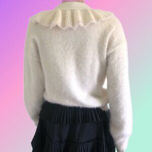 KIDICHIC gorgeous ivory sweater features a 60's inspired ruffle neckline embellished with white shiny faux pearls. Long sleeves, pullover style, soft and fuzzy Polyamide, moisture-wicking and quick drying properties, hand wash. Excellent condition never worn, NEW without Tag. Girl Size 16.