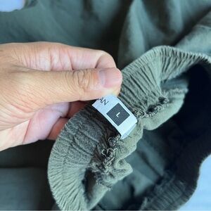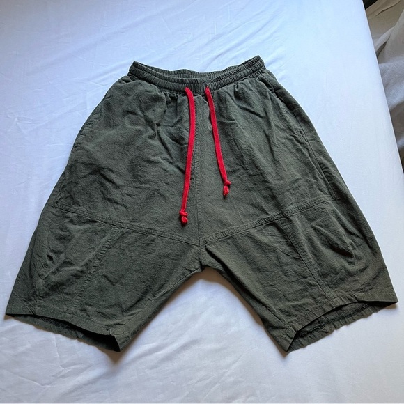 KIDORIMAN olive army green contrast elastic waist drop crotch shorts, xs