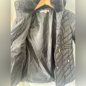 Gorgeous black puffer jacket with faux fur trim and hoodie