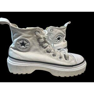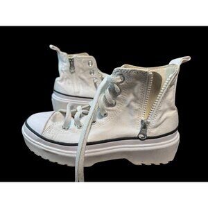 KIDS Converse All Star White High-Top Platform Sneakers With Side Zipper & Lace-