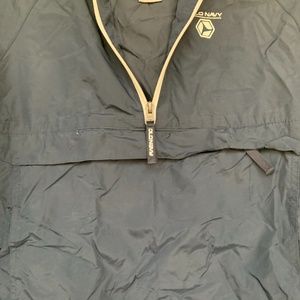 KIDS NAVY BLUE HALF ZIP HOODED PACKABLE WINDBREAKE