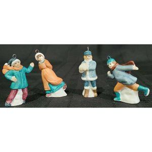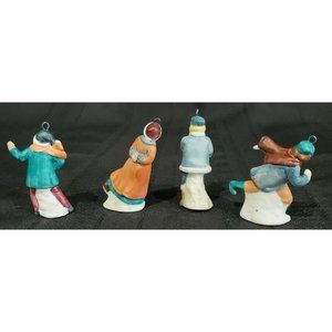 KIDS PLAYING SKATING SNOWBALL WINTER Christmas Village Kmart 4 FIGURES ORNAMENTS