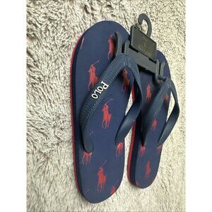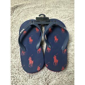 KIDS RALPH LAUREN POLO "WHITLEBURY" PONY FLIP FLOP Boys Size 1 Junior