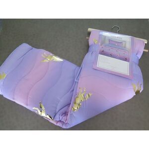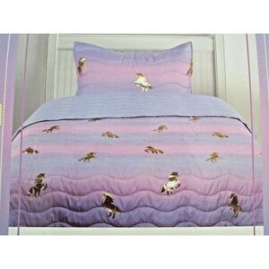 KIDS RULE GOLD METALLIC UNICORNS PURPLE & PINK OMBRE BACKGROUND REVERSIBLE TWIN QUILT SHAM SET NEW! $120