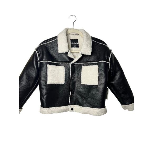 Kids RSQ Sherpa button style jacket with faux leather. Size medium