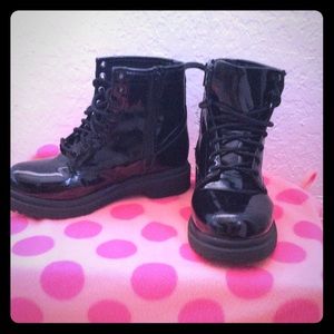 KIDS SIZE 13 BLACK LEATHER COMBAT BOOTS (SHINY)
