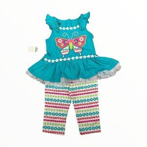 KIDS HEADQUARTERS | Turquoise | BUTTERFLY TUNIC COTTON SET