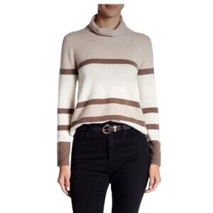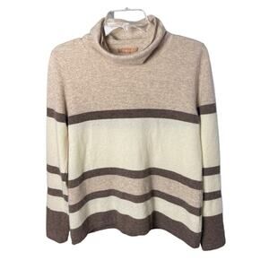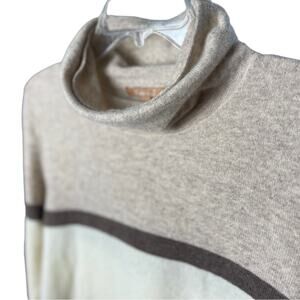 KIER + J 100% Cashmere Sweater, Multicolor, Loose Turtleneck, Neutrals, Beach, M