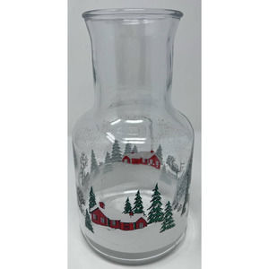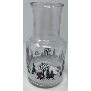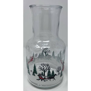 KIG Indonesia Vintage Glass Christmas Winter Sleigh Scene Carafe Decanter 9"