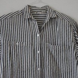 KIIAZANA Vintage Cotton Fine Woven Pinstripe T-shirt | Size S