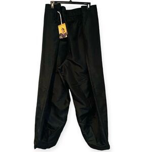 These solid black pants boast a tapered leg with a classic, mid-rise fit. Scallop edge detailing on the side pockets and elastic in back finish off the stylish look.