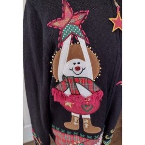 KIKIT Black Christmas Cardigan Sweater Large Embellished ZIP